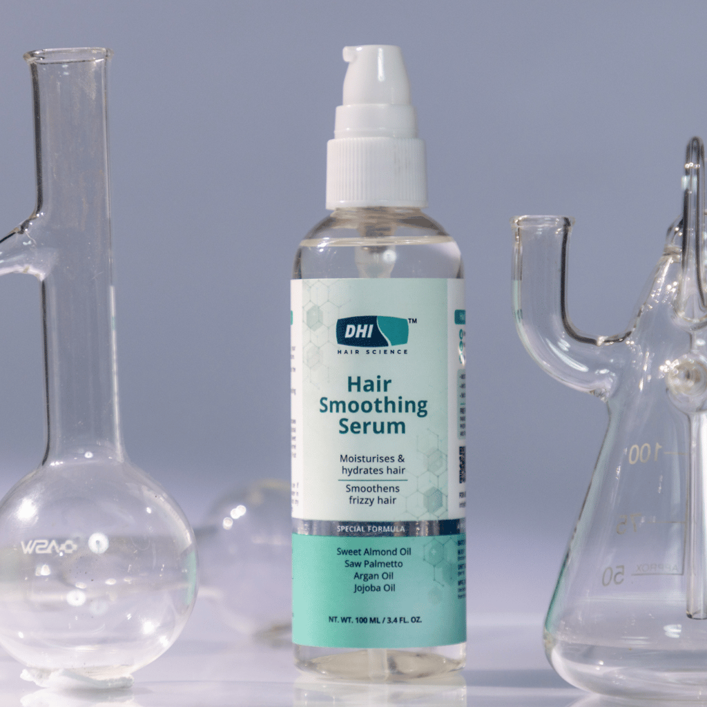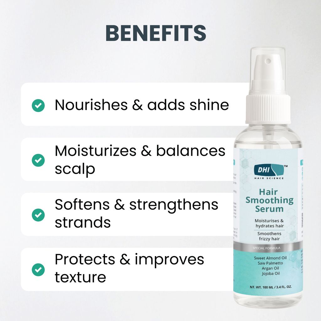 DHI Smoothing Hair Serum For Dry & Frizzy Hair | Moisturises & Hydrates Hair | Smoothness Hair Texture | Enriched with Sweet Almond Oil, Saw Palmetto, Argan Oil & Jojoba Oil | Antioxidant Properties | For Men & Women | Sulphate & Paraben Free | 100 ml