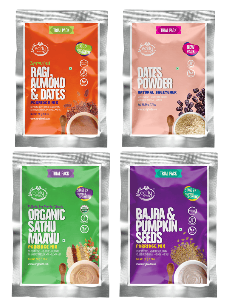 622b3b612d8806a4e694a49e Early Foods Stage 2 Trial Pack Combo - Organic Fresh Porridge Mixes - 50g each X 3 https://shop.preggerz.in/s/6123687a0e3882eabaee1e6e/622c3a88f7c6d1ecc155aac3/stage-2-trial-packs-1.png