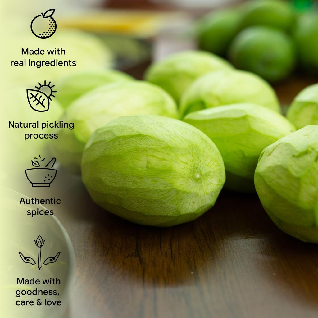 • Raw mango pieces are pickled in a rich mix of spices and flavourful mustard oil.