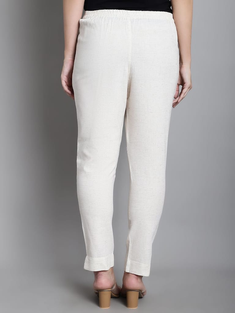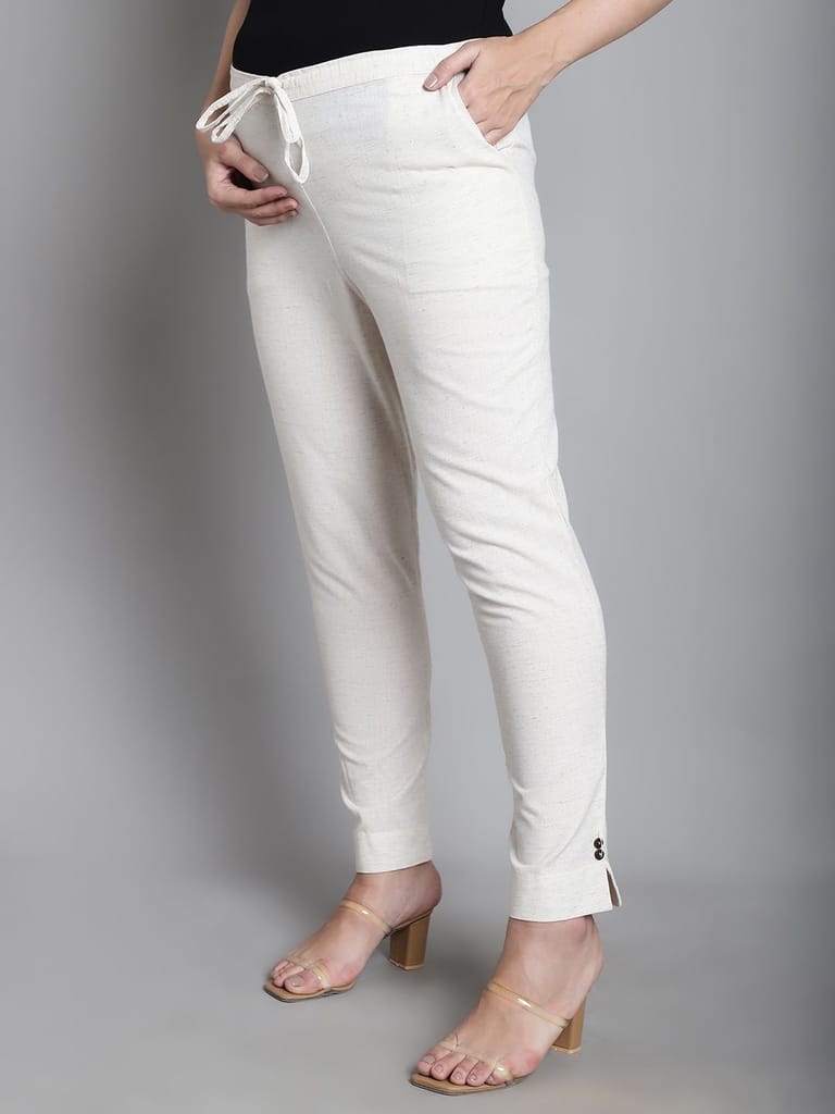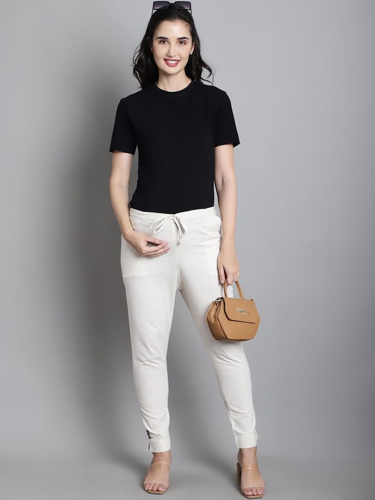Moms Maternity Solid Off White Sustainable Cotton Ankel Length Maternity Trouser