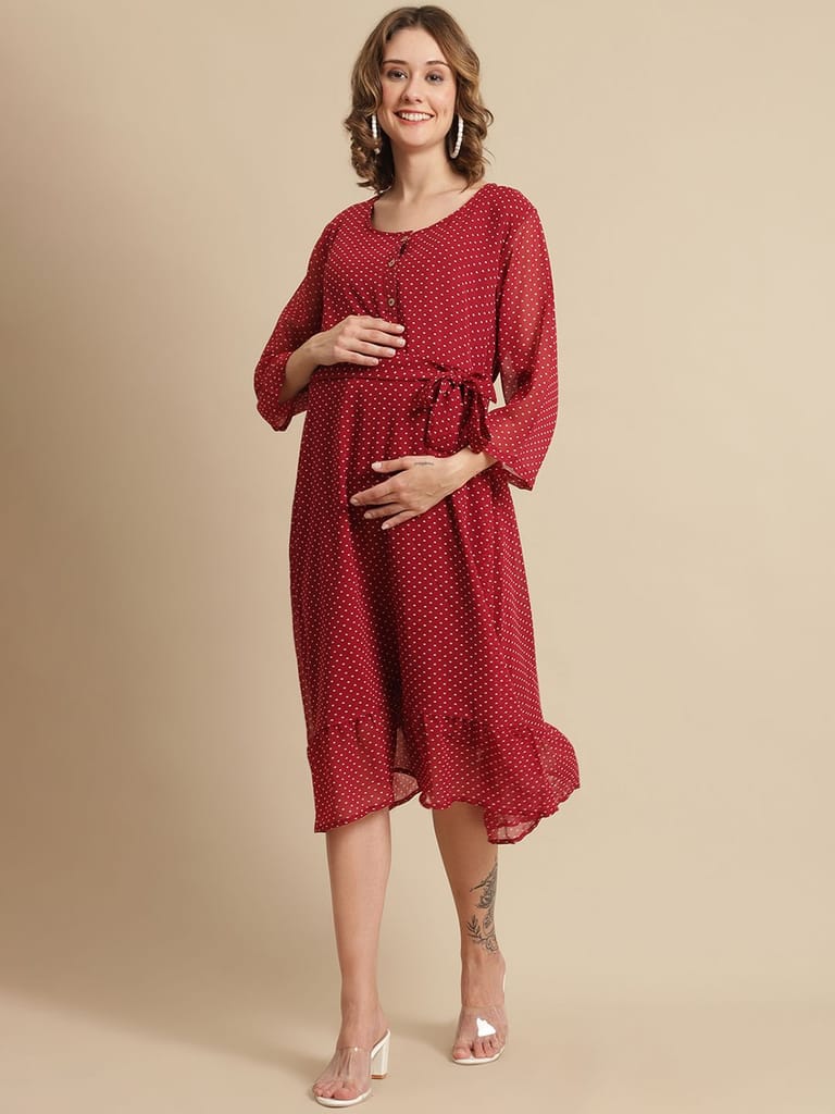 +918929345355 https://shop.preggerz.in/s/6123687a0e3882eabaee1e6e/667aa023756b50348aa03f23/newmi-care-red-480x480.png" [email protected] 651eaa6eeba61a32342af449 Moms Maternity Women's Maternity Georgette Polka Dot Print Red Midi Dress https://shop.preggerz.in/s/6123687a0e3882eabaee1e6e/65210d0197a626602bc3056c/jiq09opm.jpg Description: