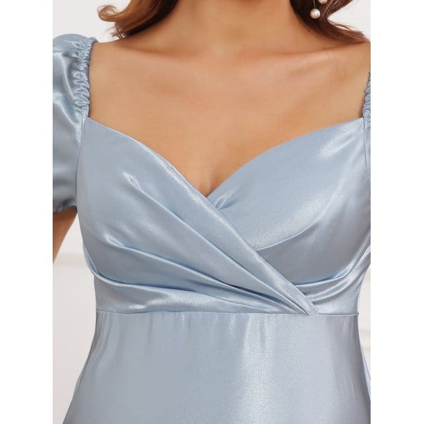 Plum and Peaches Puff Sleeves Elegant Satin Baby Shower Gown