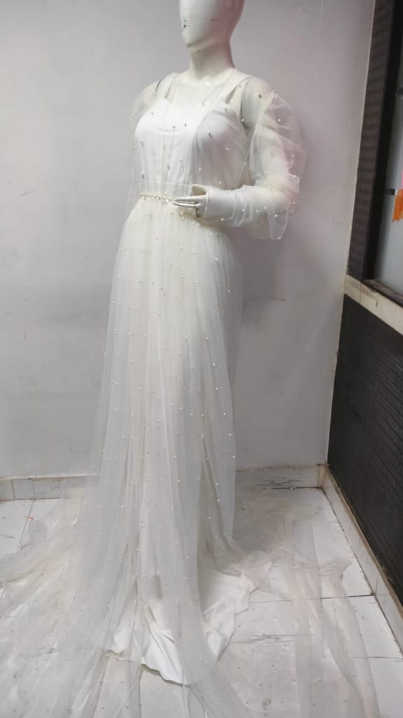 - Bathrobe made of delicate tulle with pearls.