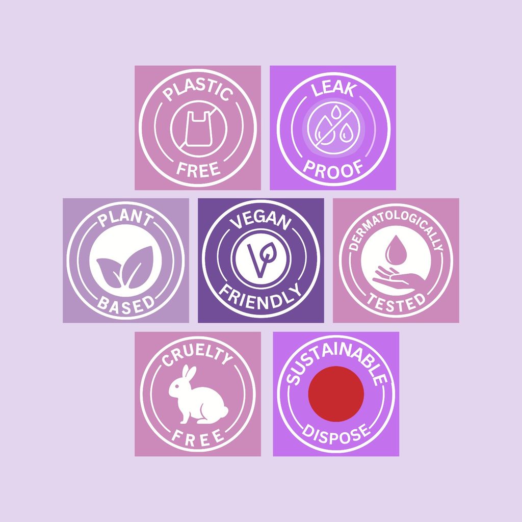 - Sustainable disposal: Individual paper disposable pouches are cost-free with each sanitary pad market, with a red dot for easy waste segregation.