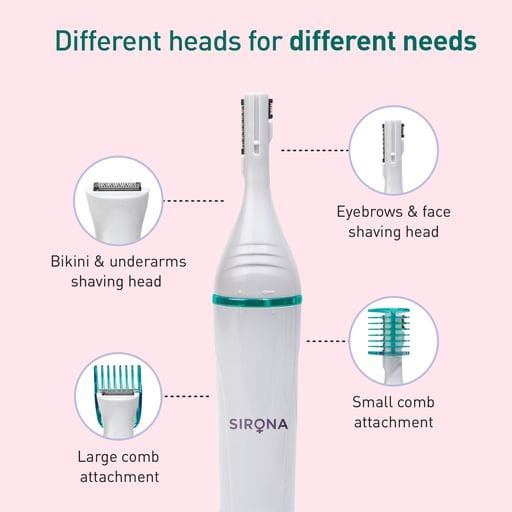 Sirona 6-in-1 Electric Trimmer for Women | For Eyebrows, Upper Lips, Chin, Peach Fuzz, Underarms & Bikini Area