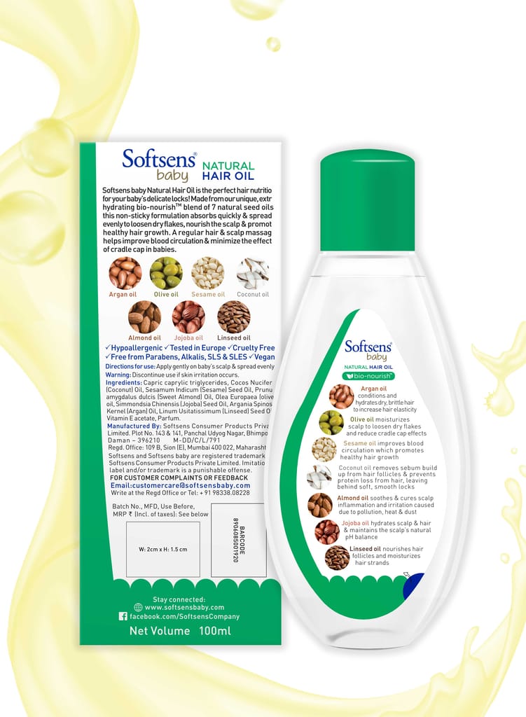 Yes, this natural baby hair oil is specially formulated with ingredients that help reduce the effects of cradle cap. Gently massage your baby's dry scalp with the oil. Use a soft baby brush to loosen scaly skin. Wash it off with a mild and gentle baby shampoo like the Softsens Tear-free Baby Shampoo