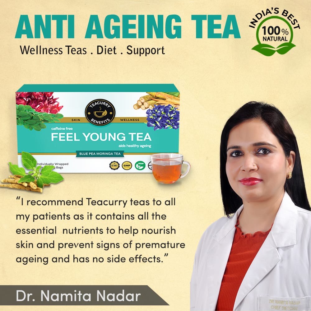 TEACURRY Anti Ageing Tea (1 month Pack | 30 tea Bags) - Feel Young Tea helps in Skin Glow, Hair Care and Premature Ageing