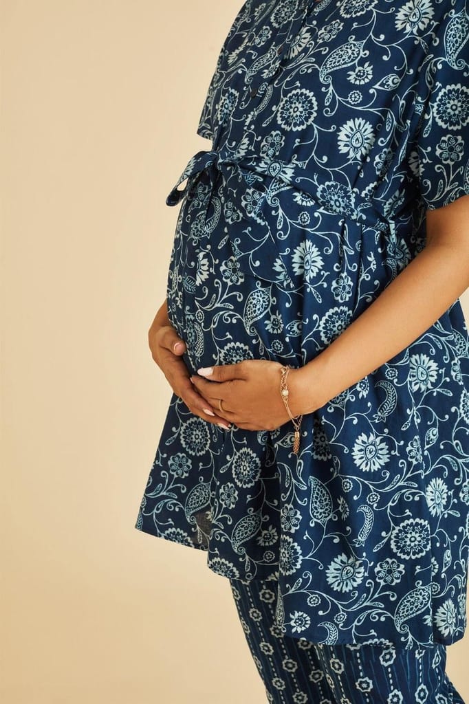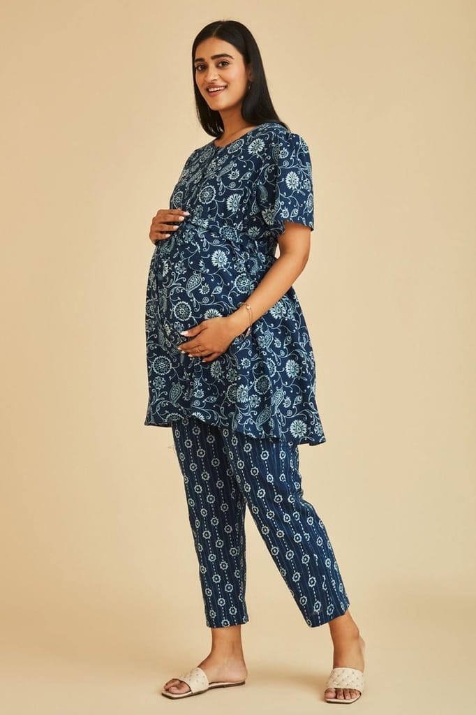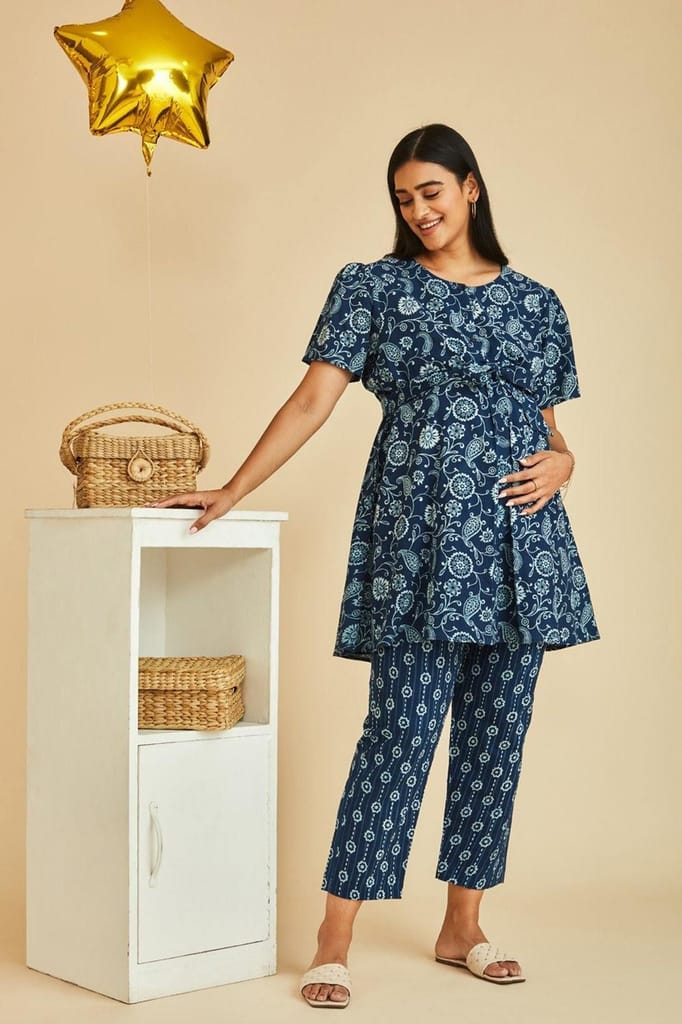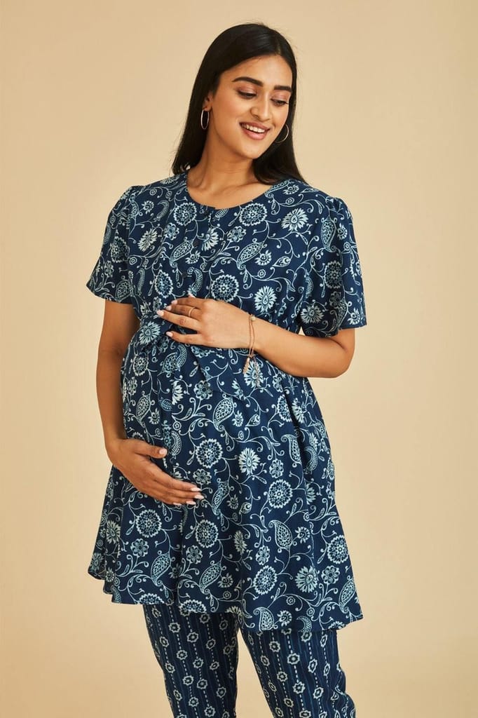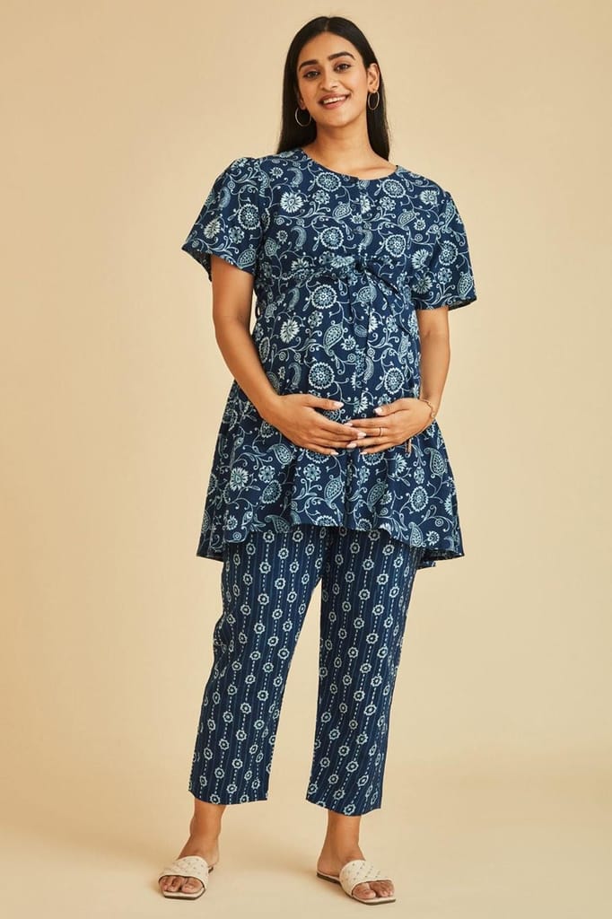 - The Mama Project Grace Nursing & Maternity Indigo A-line Kurta Set