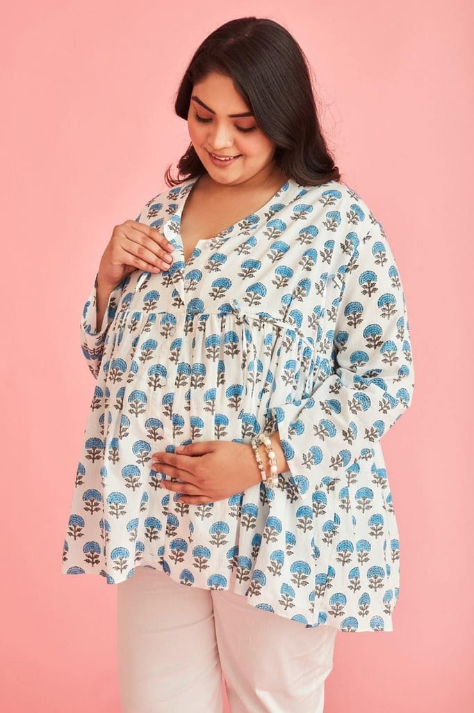 - Floaty & girly with an ultra-easy fit, our Kyra Maternity Blouse is a staple item for new moms & moms-to-be.