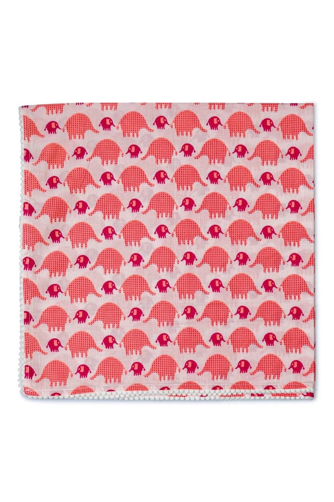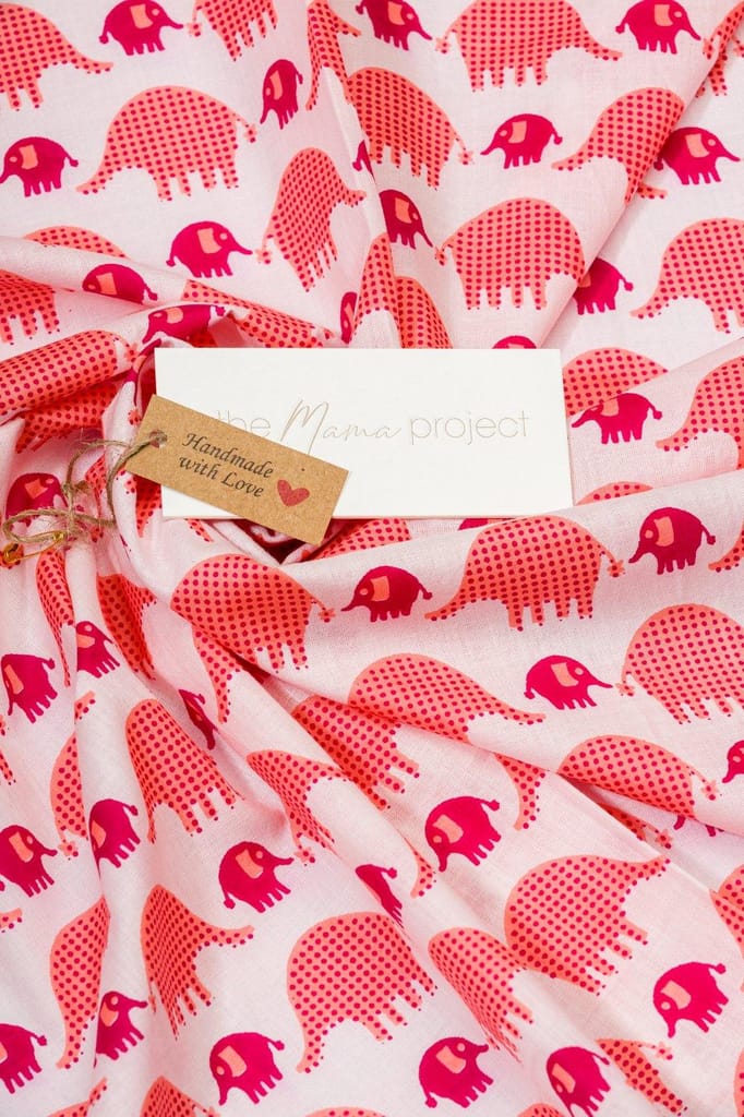 The Mama Project Pink Elephant Love Organic Muslin Swaddle Sheet