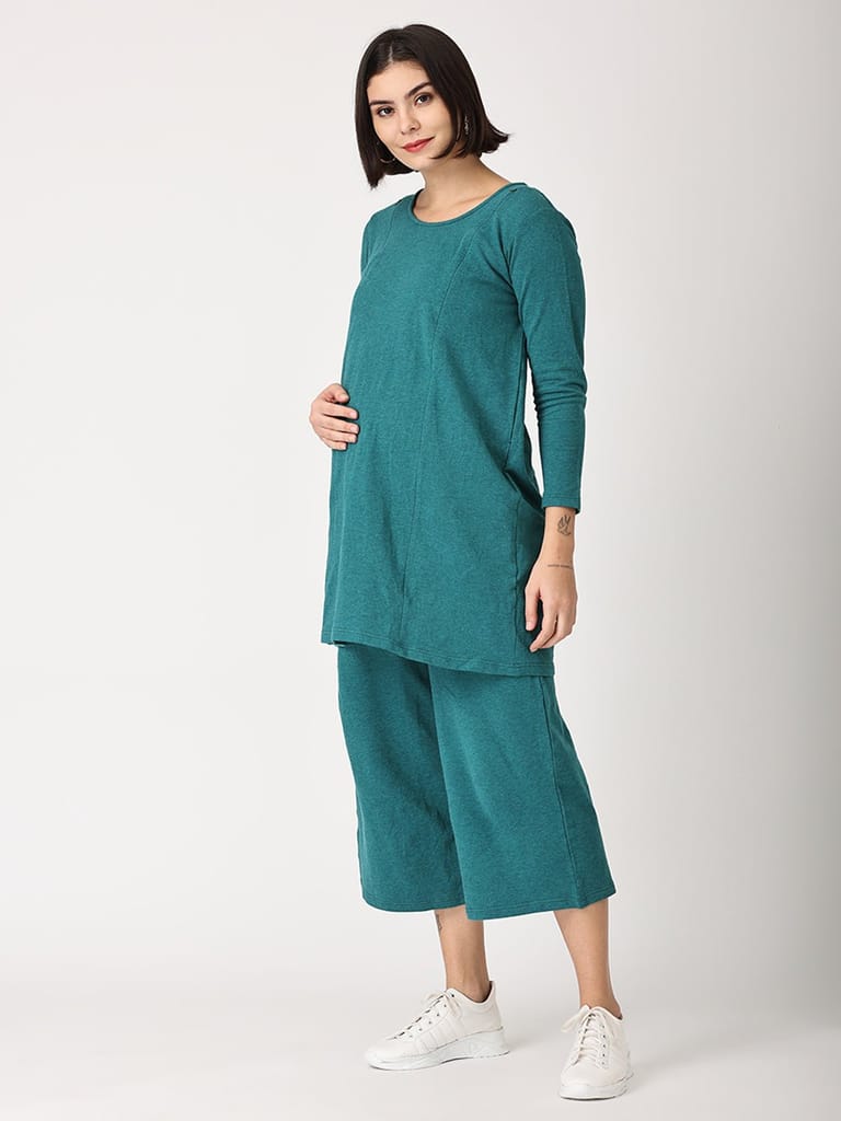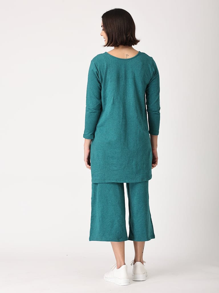- Teal Cotton Lycra Sweatshirt & Pajama Set,Round Neck